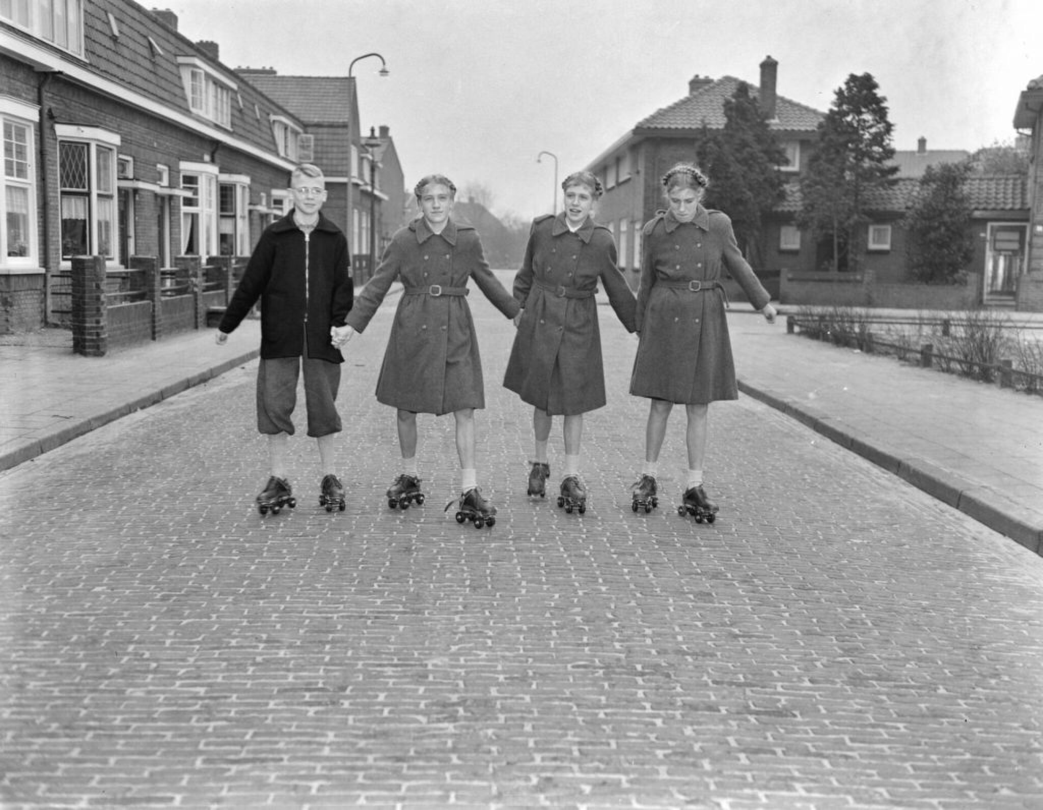 We konden toen nog gewoon op straat voetballen. In de straat stonden toen hooguit twee auto’s. Het mocht echter niet en als de politie om de hoek kwam aanrijden in het halfje wit, zo noemden wij die witte volkwagens met een half afgezaagd dak, dan maakte je dat je weg kwam anders namen ze de bal in beslag. En geld om een nieuwe bal te kopen had je niet. Ook waren de stoepen toen veel breder dan nu. Je kon erop touwtje springen en knikkeren. Ook rolschaatsen op Hudora’s met die ijzeren wielen kon toen nog. Die maakten behoorlijk veel herrie.