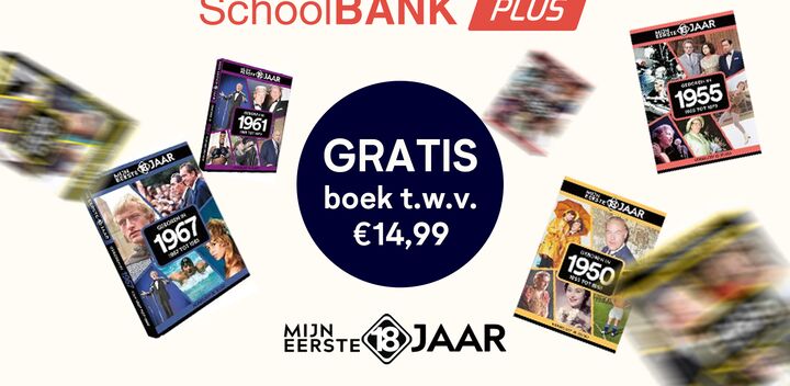 Acties Van toen 13 oktober 2022 9 Ontvang gratis een Mijneerste18jaar boek t.w.v. 14,95 bij SchoolBANK PLUS Ben jij nog geen SchoolBANK PLUS gebruiker? Stap nu over op SchoolBANK PLUS en ontvang er GRATIS een boek naar keuze van ... SchoolBANK redactie